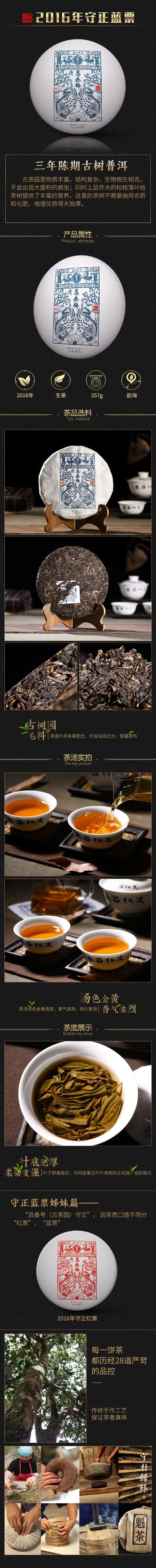 昌泰普洱 2016年蓝票守正 357g茶饼