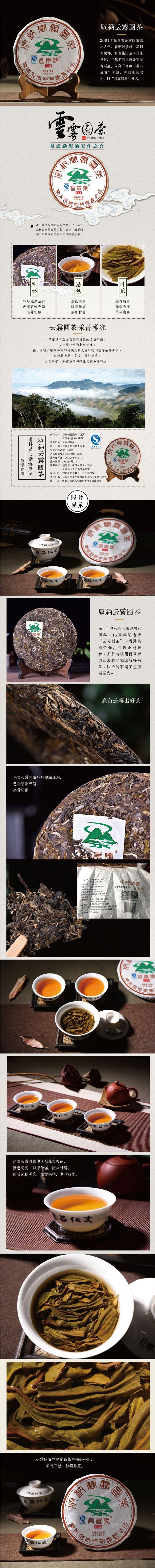 昌泰普洱 2017年 云雾圆茶 400g 茶饼