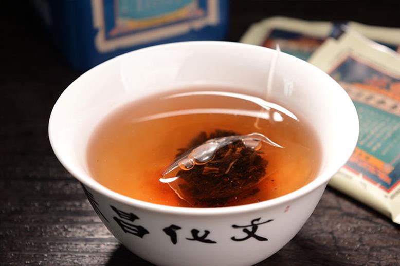 准备容量为700毫升的保温杯,用茶夹取出一袋昌泰龙团凤饼放入保温杯中,注沸水至杯口,盖上杯盖至完全密封,至少闷泡8分钟。若焖泡28分钟,茶包充分溶解,水浸出物浓度高,口感最佳。将闷泡茶汤倒入公道杯中,茶汤清澈透亮。
