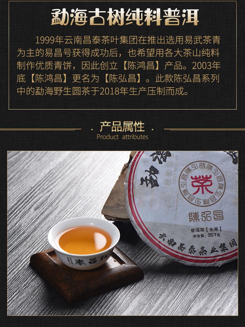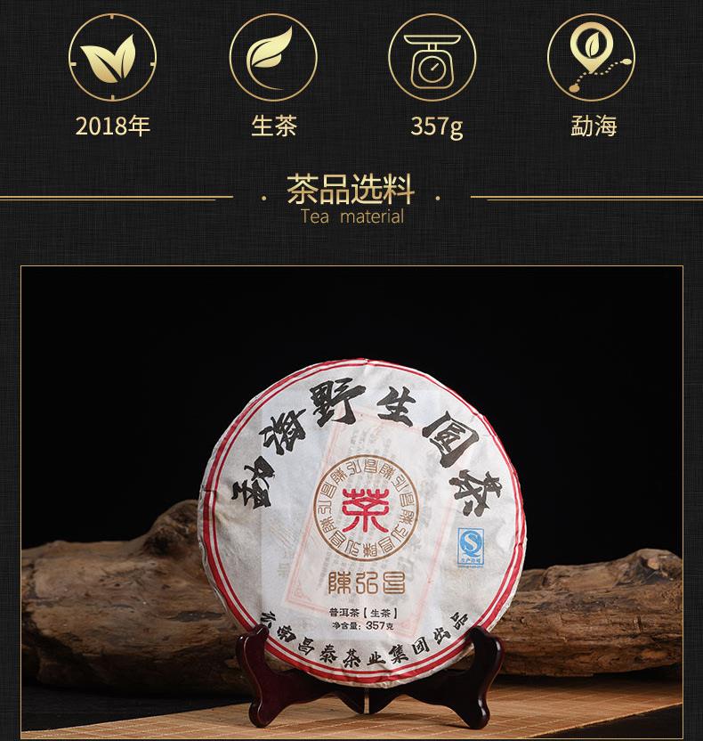 昌泰普洱 2018年勐海野生圆茶 普洱茶生茶 饼茶 357g