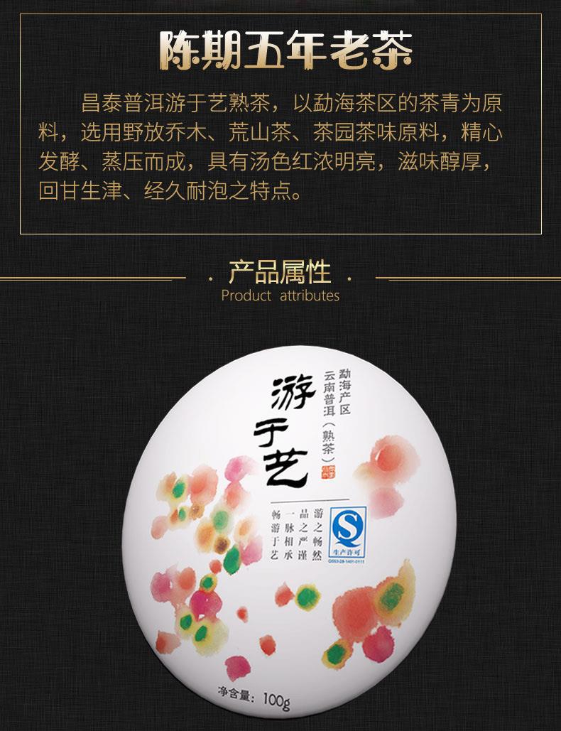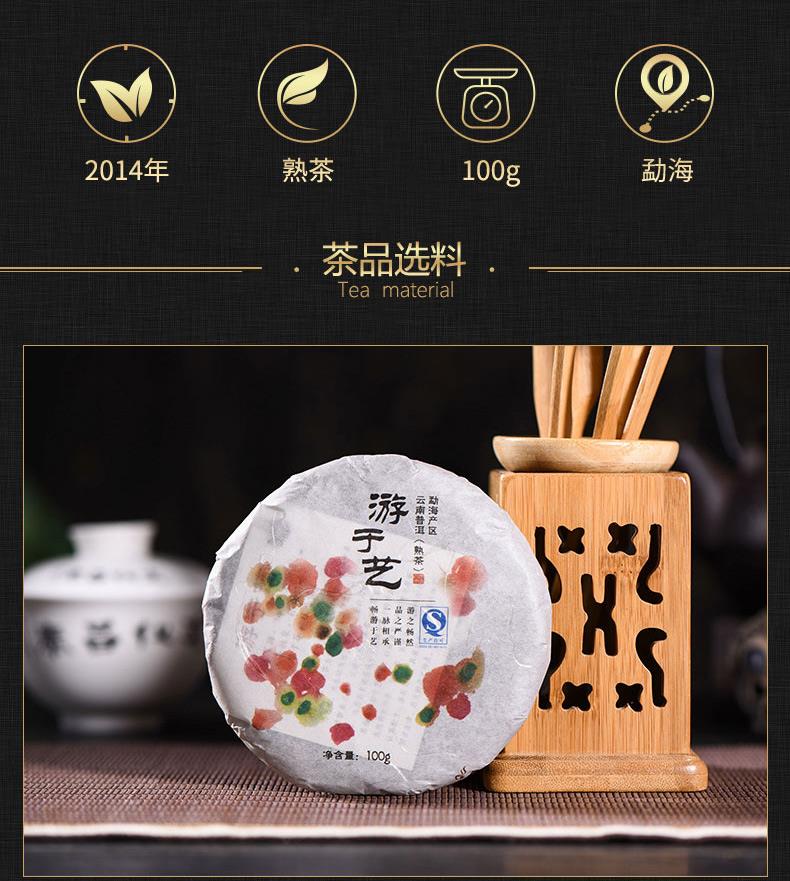 昌泰普洱 2014年游于艺 普洱熟茶 100g 茶饼