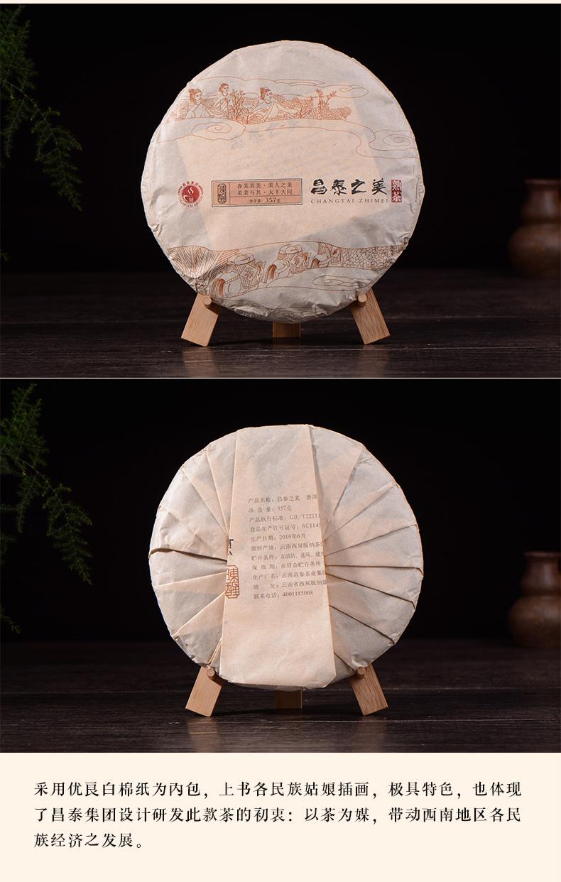 昌泰普洱 2019年 昌泰之美 普洱生茶 357g 饼茶