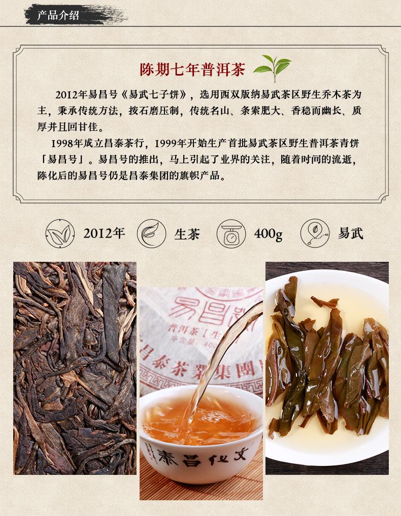 昌泰普洱 2012年易昌号 精品 400g 饼茶