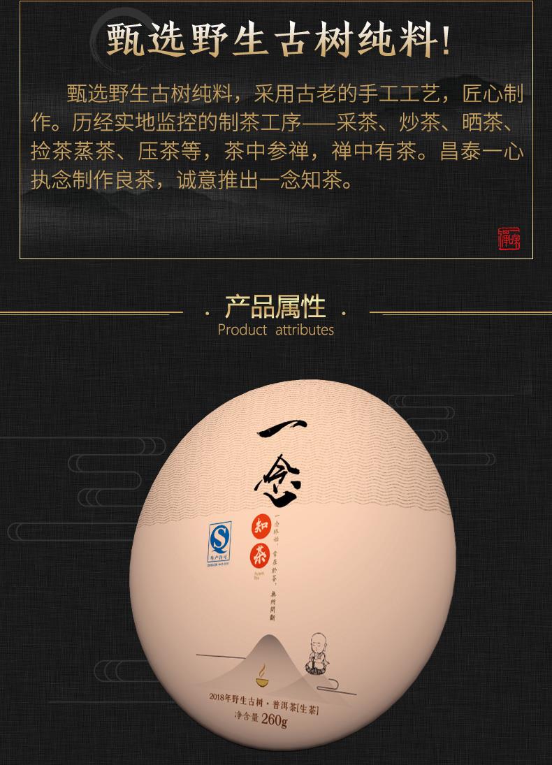 昌泰普洱 2018年 一念知茶 普洱生茶 260g 饼茶