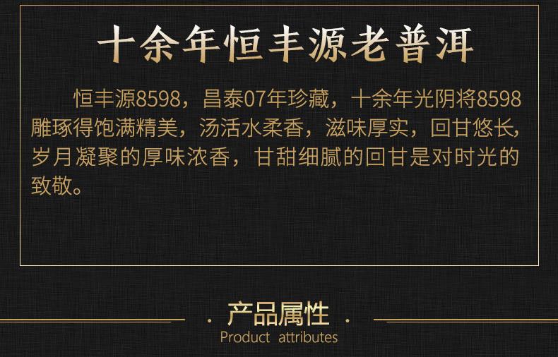 昌泰普洱 2007年 恒丰源8598 普洱熟茶 357g 饼茶