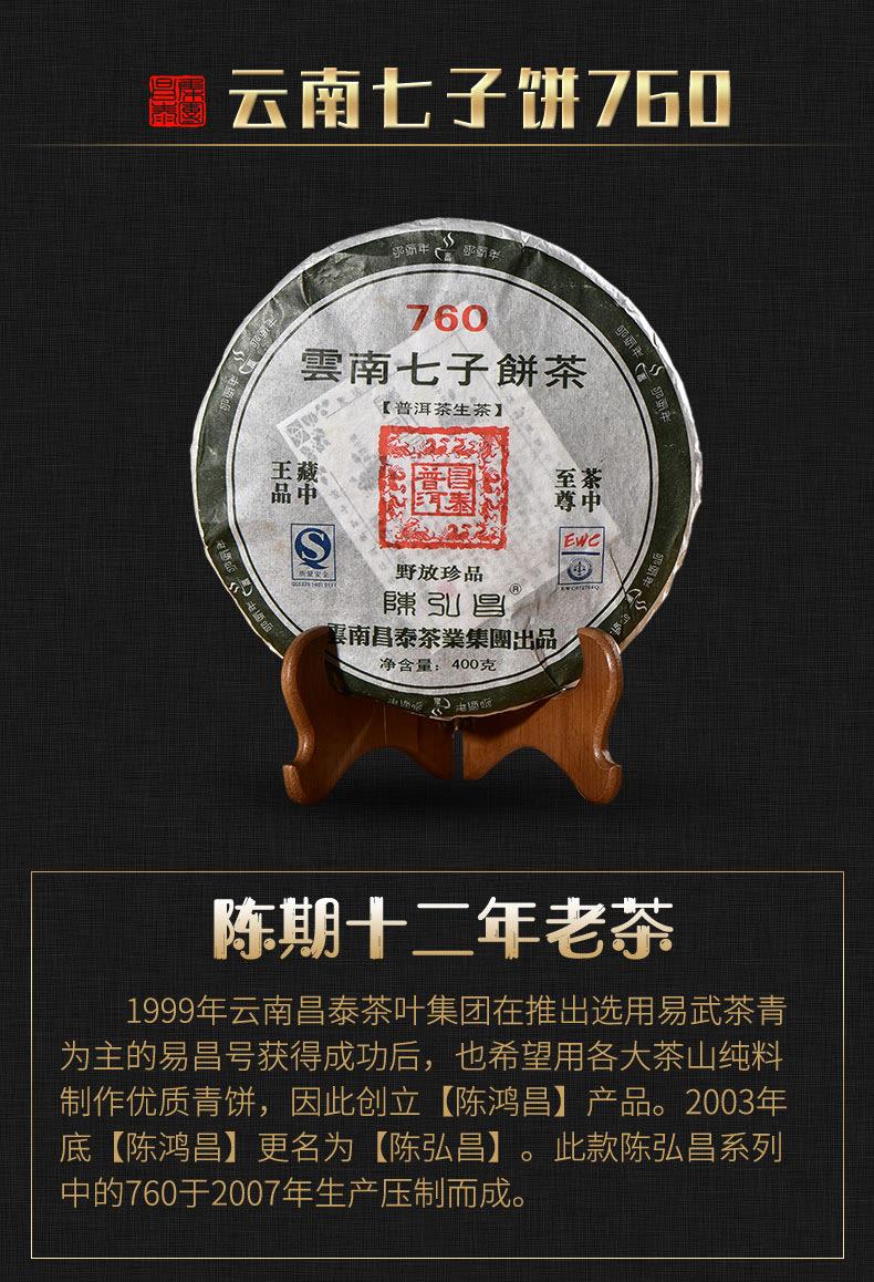 昌泰普洱 2007年 陈弘昌 760 普洱生茶 400g