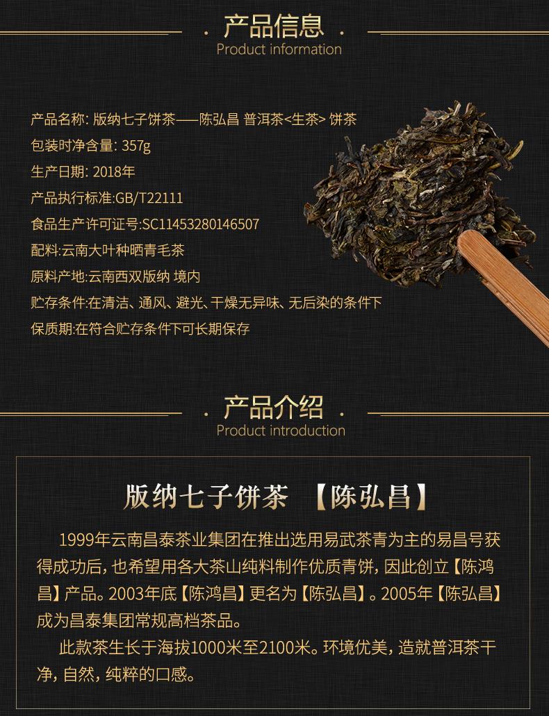 昌泰普洱 2018年 陈弘昌 版纳七子饼茶 普洱生茶 357g