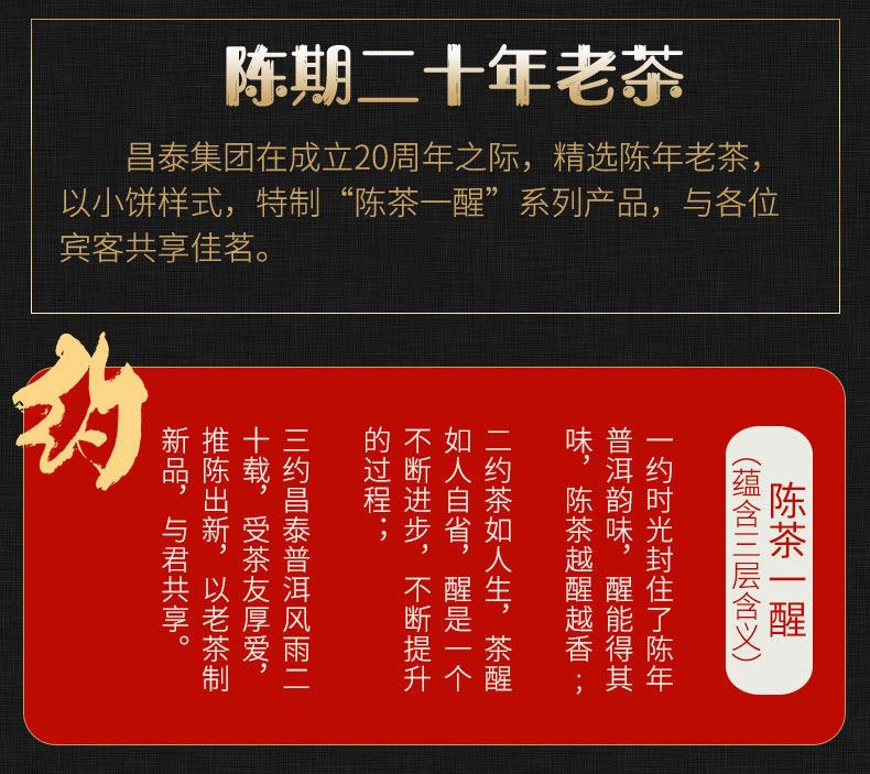 昌泰普洱 陈茶一醒 陈期二十年 老生茶老熟茶礼盒装 320g
