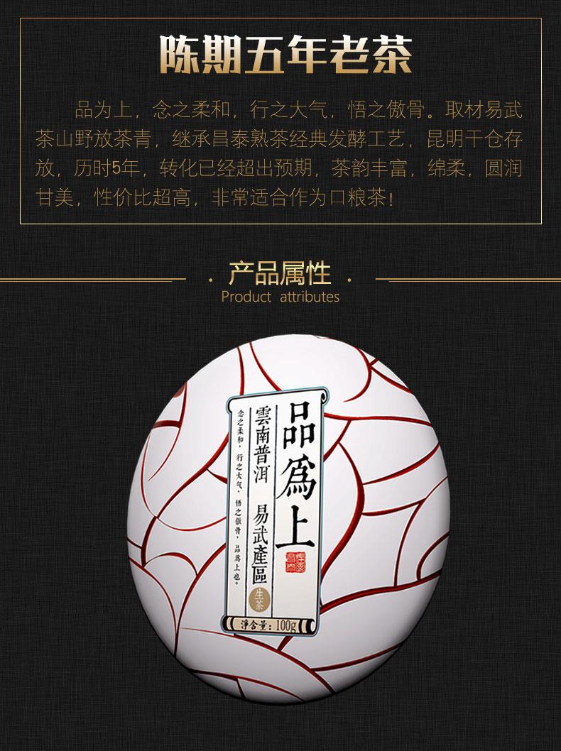 昌泰普洱 品为上 普洱熟茶 357g 饼茶