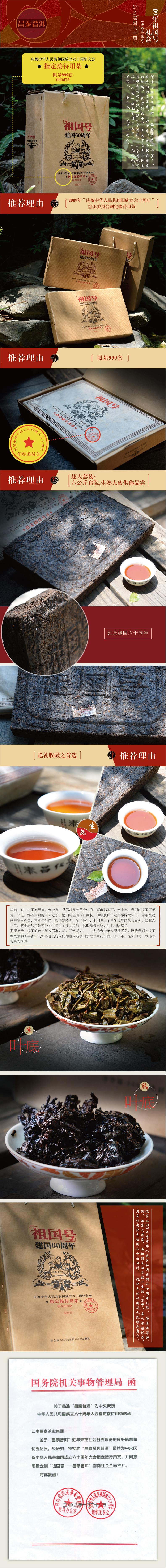 昌泰普洱 2009年 典藏级礼品茶 祖国号 六公斤茶砖