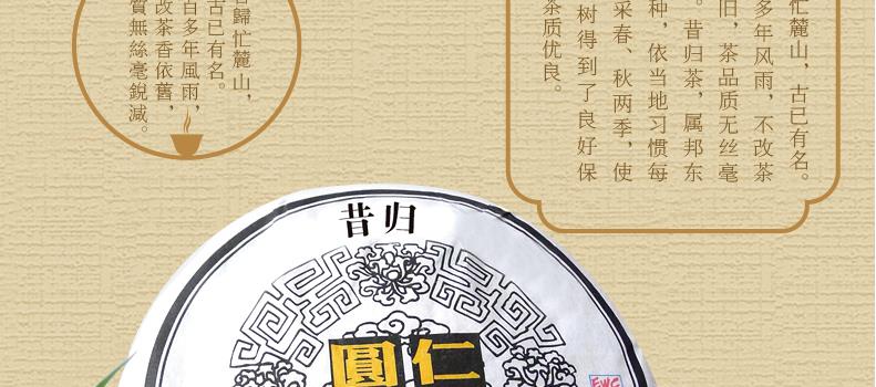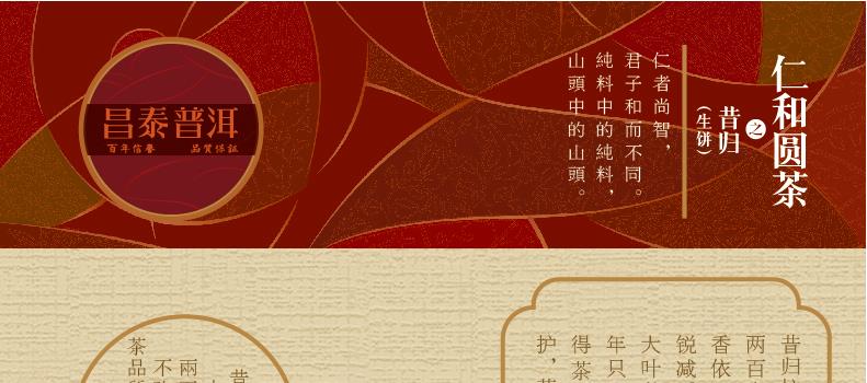 昌泰普洱 圆茶仁和 昔归 普洱生茶 400g 饼茶