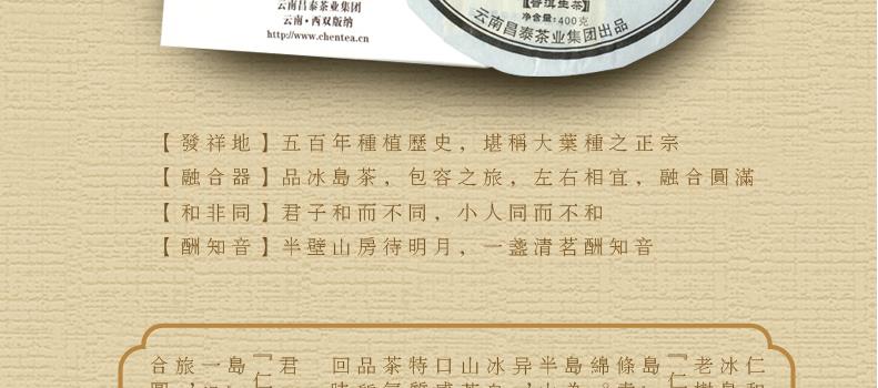 昌泰普洱 圆茶仁和 冰岛 普洱生茶 400g 饼茶