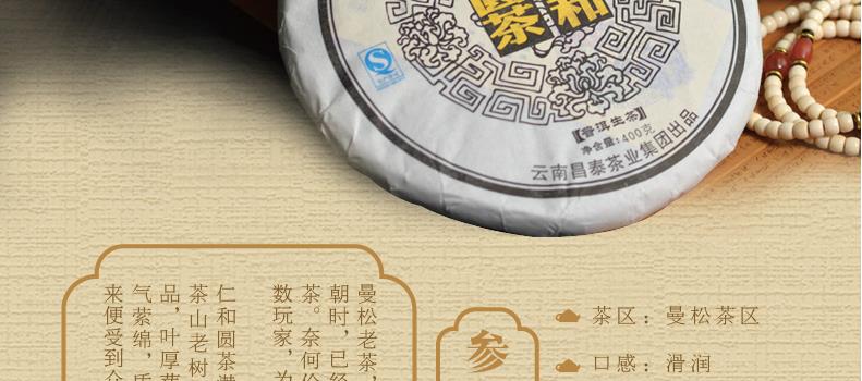 昌泰普洱 圆茶仁和 曼松 普洱生茶 400g 饼茶