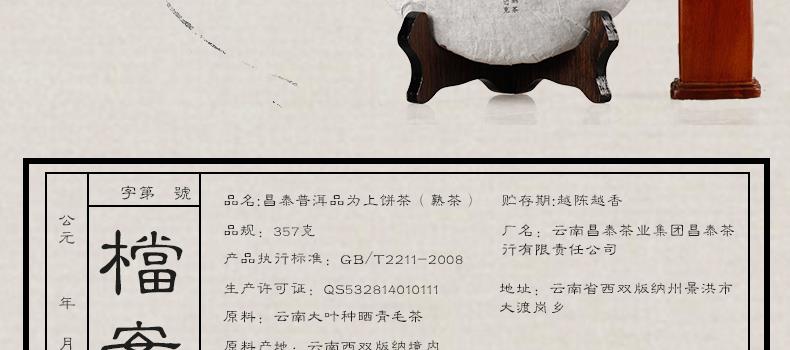 昌泰普洱 品为上 普洱熟茶 357g 饼茶